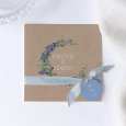 Ce modèle comprend 3 éléments : un faire-part, une carte glissée dans sa pochette interne et une étiquette à attacher sur le devant. Des perforations sont prévues sur le faire-part pour y glisser un joli ruban (au choix et en supplément), agrémenté de l'étiquette.