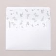 Ce modèle comprend 3 éléments : un faire-part, une carte glissée dans sa pochette interne et une étiquette à attacher sur le devant. Des perforations sont prévues sur le faire-part pour y glisser un joli ruban (au choix et en supplément), agrémenté de l'étiquette.
