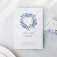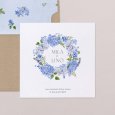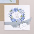 L'incontournable thème floral est revisité avec modernité sur le faire-part de mariage Hortense. Une superbe couronne de fleurs aux tons bleus s'esquisse sur cette création, parfaite pour donner le ton d'un mariage champêtre chic coloré.