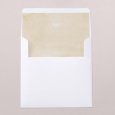 Sur le faire-part de mariage Bow and rings, deux alliances dorées sont liées par un élégant ruban. Accompagné des prénoms des mariés sublimés d'or, ce précieux symbole annoncera, avec émotion, la cérémonie à venir.
