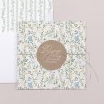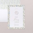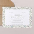 Sur le faire-part de mariage Green wall se dévoile un foisonnant jardin de feuillages et de délicates fleurs colorées. Une création romantique aux accents bucoliques, parfaite pour annoncer un mariage au printemps ou en été.