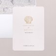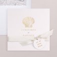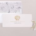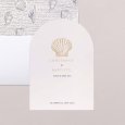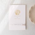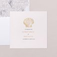 Un coquillage sublimé d'or s'invite sur le faire-part de mariage Atlantide. Une création chic et épurée, idéale pour célébrer un mariage élégant au thème marin.