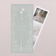 Tendre vert céladon, motifs champêtres et véritables fleurs séchées se rencontrent sur le faire-part de mariage Florentina. Une invitation pleine de fraîcheur et de poésie, parfaite pour conter le plus beau jour de votre vie.