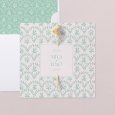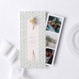 Ce faire-part est composé d'une carte double-volet et d'un marque-page glissé à l'intérieur.