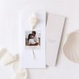 Ce faire-part est composé d'une carte double-volet et d'un marque-page glissé à l'intérieur.