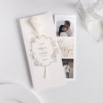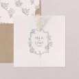 Des fleurs champêtres finement illustrées s’invitent sur le faire-part de mariage Désirée. Un modèle à la fois romantique et poétique à agrémenter de véritables fleurs séchées, pour donner le ton d’une journée bohème.