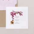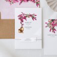 Sur le faire-part de mariage Bougainvillée, le superbe arbuste aux couleurs chatoyantes du même nom s’illustre au-dessus des prénoms des mariés, doux clin d’œil à un futur mariage d’été célébré en Méditerranée.