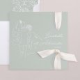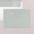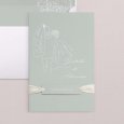D'un tendre vert d'eau, le faire-part de mariage Green romance esquisse, en quelques lignes, les fiancés en route vers ce nouveau chapitre. Romantique et poétique, ce faire-part contera, de la plus jolie des façons, votre mariage à venir.