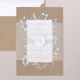 Authenticité et modernité se rencontrent sur le faire-part Symphonia. Ses délicates feuilles d’eucalyptus esquissées façon aquarelle, son papier d'aspect kraft et sa typographie sublimée de finitions cuivrées créent une élégante symphonie pour annoncer le plus beau jour de votre vie.