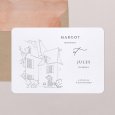 Une superbe maison de campagne s’invite sur le faire-part de mariage Giverny. Une création délicatement esquissée, en hommage à un lieu de réception familial, empli de charme et d’authenticité.