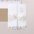 Sur le faire-part de mariage Spring wildery, de délicats bouquets de fleurs sauvages s’apposent autour des prénoms des jeunes mariés. Une superbe aquarelle aux tons bohèmes, parfaite pour révéler votre mariage coloré, au printemps ou en été.