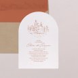 En forme d'alcôve, ce faire-part se personnalise au recto et au verso avec tous les détails de votre mariage.