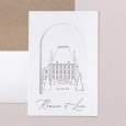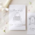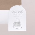 En forme d'alcôve, ce faire-part se personnalise au recto et au verso avec tous les détails de votre mariage.