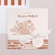 La douce poésie de la côte amalfitaine s’invite sur le faire-part de mariage Sorrente. Une jolie table aux airs de Méditerranée s’esquisse en tons terracotta sur cette papeterie, la promesse d'une célébration ensoleillée à l'esprit résolument dolce vita.