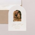 En forme d'alcôve, ce faire-part se personnalise au recto et au verso avec tous les détails de votre mariage.