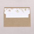 Sur le faire-part de mariage Carmen, une superbe couronne de fleurs esquissée en or encadre les prénoms des jeunes mariés. Une composition raffinée, parfaite pour conter un mariage champêtre, chic ou bohème.