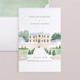 Sur le faire-part de mariage Médicis, une délicate aquarelle laisse entrevoir le lieu de votre réception à vos invités. Un tableau élégant, parfait pour une union champêtre chic.