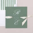 À la fois minimaliste et chic, le faire-part de mariage Canterbury dévoile les initiales des futurs mariés, joliment calligraphiées. Une création aux doux tons verts, idéale pour célébrer un mariage élégant.