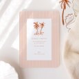 Rayures modernes et palmiers élancés s'invitent sur le faire-part de mariage Belle-Île. Une création moderne aux allures estivales, idéale pour un mariage célébré dans le sud.