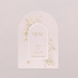 Avec son élégante découpe en forme d'arche, ce menu de mariage, assorti à vos faire-part, complétera merveilleusement votre décoration de table. Présentez-le sur un élégant porte-carte en bois (disponible en option), déposez-en un sur chaque assiette, sublimez-les d’un joli ruban…