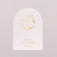 Avec son élégante découpe en forme d'arche, ce menu de mariage, assorti à vos faire-part, complétera merveilleusement votre décoration de table. Présentez-le sur un élégant porte-carte en bois (disponible en option), déposez-en un sur chaque assiette, sublimez-les d’un joli ruban…