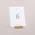 Assorti à votre faire-part, ce numéro de table agrémentera parfaitement votre décoration du jour J. Présentez-le sur un élégant porte-carte en bois (disponible en option), attachez-le à l’aide d’une ficelle autour d’un mason jar en verre garni de fleurs séchées… laissez parler votre imagination !