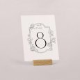 Assorti à votre faire-part, ce numéro de table agrémentera parfaitement votre décoration du jour J. Présentez-le sur un élégant porte-carte en bois (disponible en option), attachez-le à l’aide d’une ficelle autour d’un mason jar en verre garni de fleurs séchées… laissez parler votre imagination !