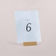Assorti à votre faire-part, ce numéro de table agrémentera parfaitement votre décoration du jour J. Présentez-le sur un élégant porte-carte en bois (disponible en option), attachez-le à l’aide d’une ficelle autour d’un mason jar en verre garni de fleurs séchées… laissez parler votre imagination !