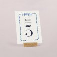 Assorti à votre faire-part, ce numéro de table agrémentera parfaitement votre décoration du jour J. Présentez-le sur un élégant porte-carte en bois (disponible en option), attachez-le à l’aide d’une ficelle autour d’un mason jar en verre garni de fleurs séchées… laissez parler votre imagination !