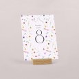 Assorti à votre faire-part, ce numéro de table agrémentera parfaitement votre décoration du jour J. Présentez-le sur un élégant porte-carte en bois (disponible en option), attachez-le à l’aide d’une ficelle autour d’un mason jar en verre garni de fleurs séchées… laissez parler votre imagination !