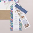Ce faire-part de baptême se présente sous forme de carte recto verso aux découpes originales, évoquant la silhouette d'une étiquette. Deux étiquettes plus petites (fournies avec le modèle) pourront être attachées à l'aide d'un ruban (à choisir en supplément). Une perforation est prévue sur le haut du faire-part, afin de lier l'ensemble.