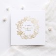 Une somptueuse couronne de fleurs, feuillages et colombes dorées entourent votre heureuse annonce sur le faire-part de baptême Ballet-gold. Élégante et raffinée, cette création sera parfaite pour inviter vos proches à célébrer cet instant magique.