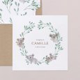 Le faire-part de baptême Koala Family saura enchanter vos invités ! C’est avec tendresse que ces adorables marsupiaux, perchés sur une couronne végétale, convieront vos proches pour une cérémonie à ne pas manquer.