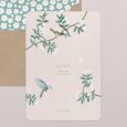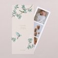 De magnifiques oiseaux perchés sur un arbre fleuri forment un sublime décor sur le faire-part de baptême Passereaux. Personnalisez ce modèle et laissez la curieuse hirondelle et le colibri azur s’émerveiller devant la jolie photographie de votre enfant. Symbole de courage et de liberté, ces petits animaux ailés présagent une cérémonie douce et heureuse.