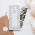 Ce faire-part de baptême est composé d'une carte pliée par le milieu et d'un photomaton, glissé à l'intérieur.