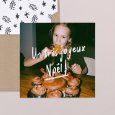 Cette carte de vœux présente un format carré plié traditionnel. À son ouverture, vos proches auront le plaisir de découvrir la photo de votre choix (ou plusieurs, selon le modèle), accompagnée de votre petit mot personnalisé.