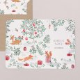 Renards, écureuils et oiseaux sont illustrés sur la carte de vœux Forêt hivernale. Un tableau aux airs de forêt enchantée, pour délivrer avec tendresse vos vœux de Noël et de nouvelle année.