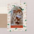 Des houx verts et des étoiles dorées se mêlent en un joyeux quadrillage sur la carte de vœux Joyful pattern, où le mot "Christmas" danse avec légèreté sur chaque case.