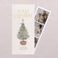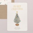 Branches de houx, rouge-gorges, étoiles et champignons esquissés décorent l’arbre symbolique des fêtes de fin d’année sur la carte Under the tree. Une ode à la créativité sublimée d’un lettrage doré, qui donnera envie à vos proches de célébrer Noël toute l’année.